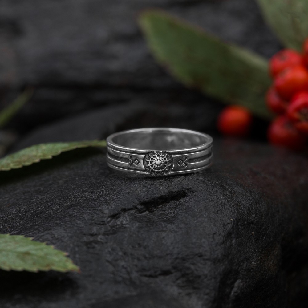 Чёрное солнце в солнечном круге - оберег, раскрывающий творческую силу и проницательность, способствующий увеличению и реализации потенциала, расширяющий сознание. Помогает духовному развитию и мудрости. Солнечный круг символизирует силу, вечную молодость, это знак мужского начала, знания и интеллекта.