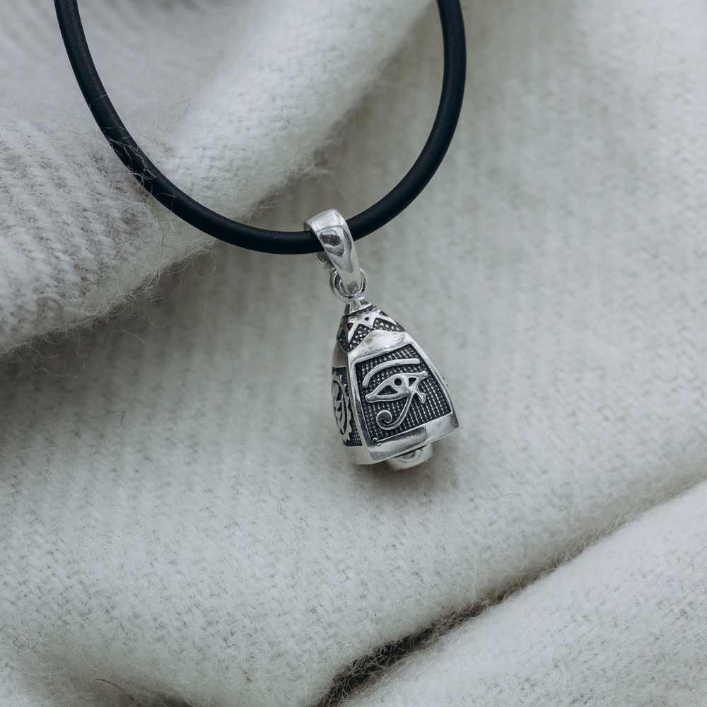 Волшебный колокольчик - оберег, призывающий Силы. Ударный язычок с камнем пробудит соколиный глаз Гора - Уаджет, точного и мощного защитника на верном пути, отпугивающего зло. Иерглиф Ци - символ жизнетворящей силы, знаний и их гармонии. Камала - символ процветания; цветок лотоса восхищает душу. NYAME YE OHENE - "Бог-король" - символ божьего превосходства, величественности и благословения у народа асанте.
