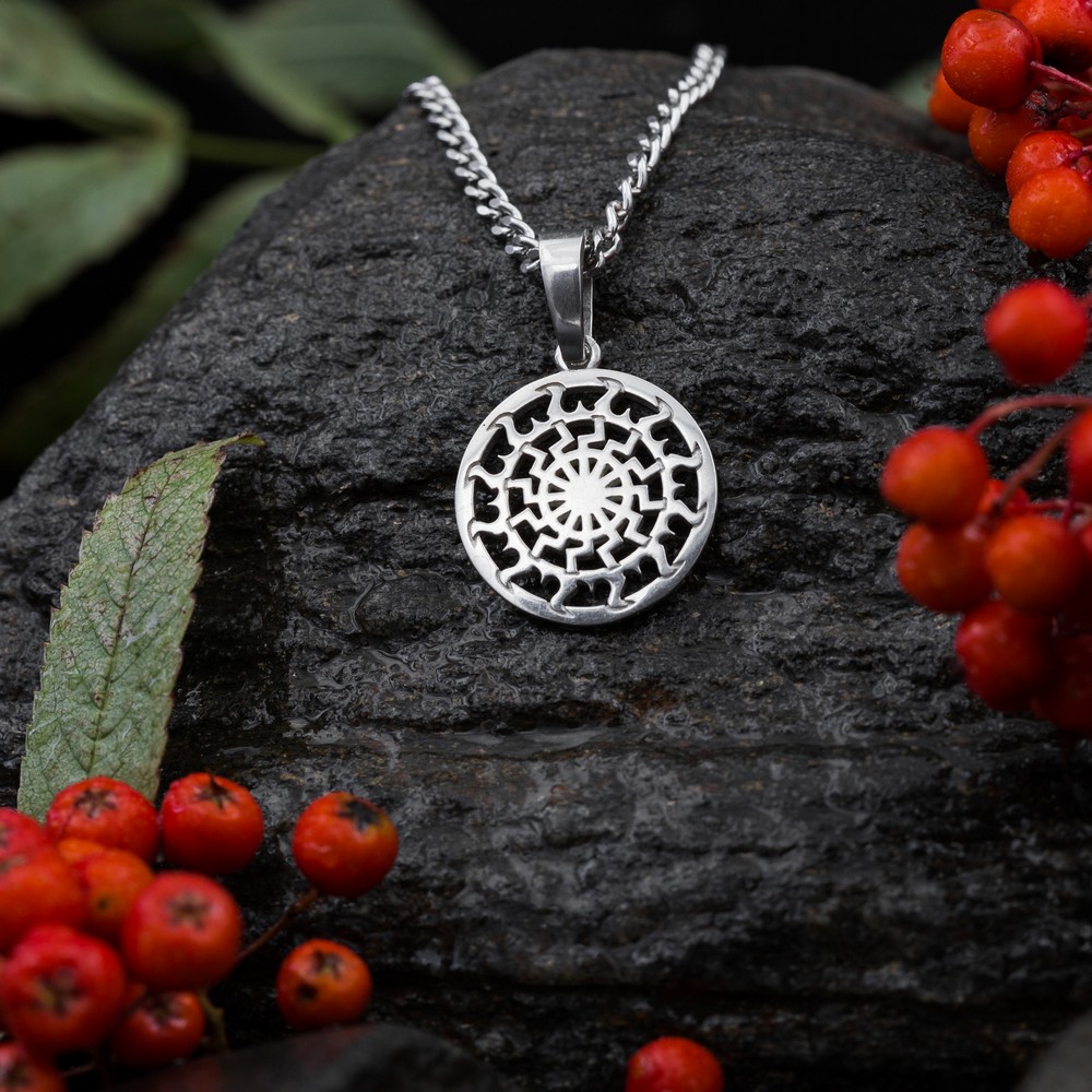 Чёрное солнце в солнечном круге - оберег, раскрывающий творческую силу и проницательность, способствующий увеличению и реализации потенциала, расширяющий сознание. Помогает духовному развитию и мудрости. Солнечный круг символизирует силу, вечную молодость, это знак мужского начала, знания и интеллекта.