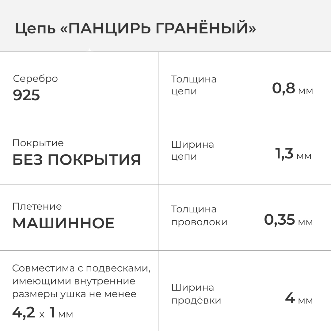 Панцирная цепь достаточно прочная и крепкая, устойчивая к разрывам и растяжениям, подходит к повседневному использованию.