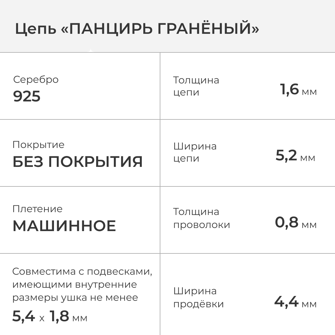 Панцирная цепь достаточно прочная и крепкая, устойчивая к разрывам и растяжениям, подходит к повседневному использованию.