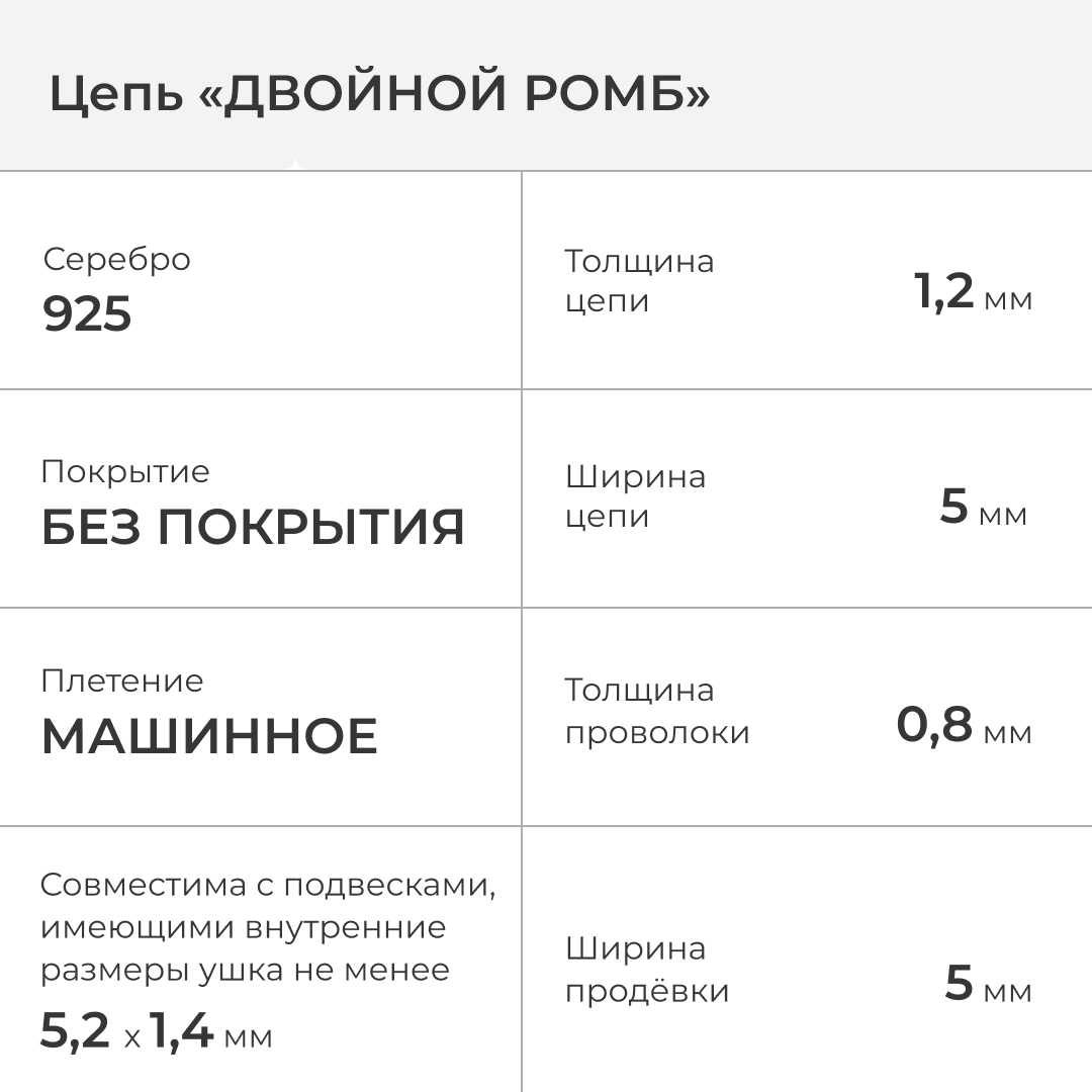| Краткие описания | "Ромб двойной" машинное плетение | |