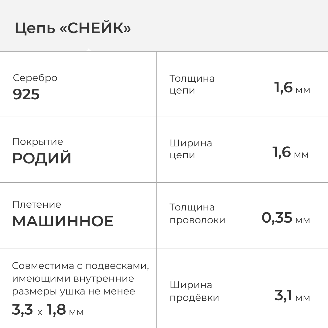 | Краткие описания | "Снейк" машинное плетение | |