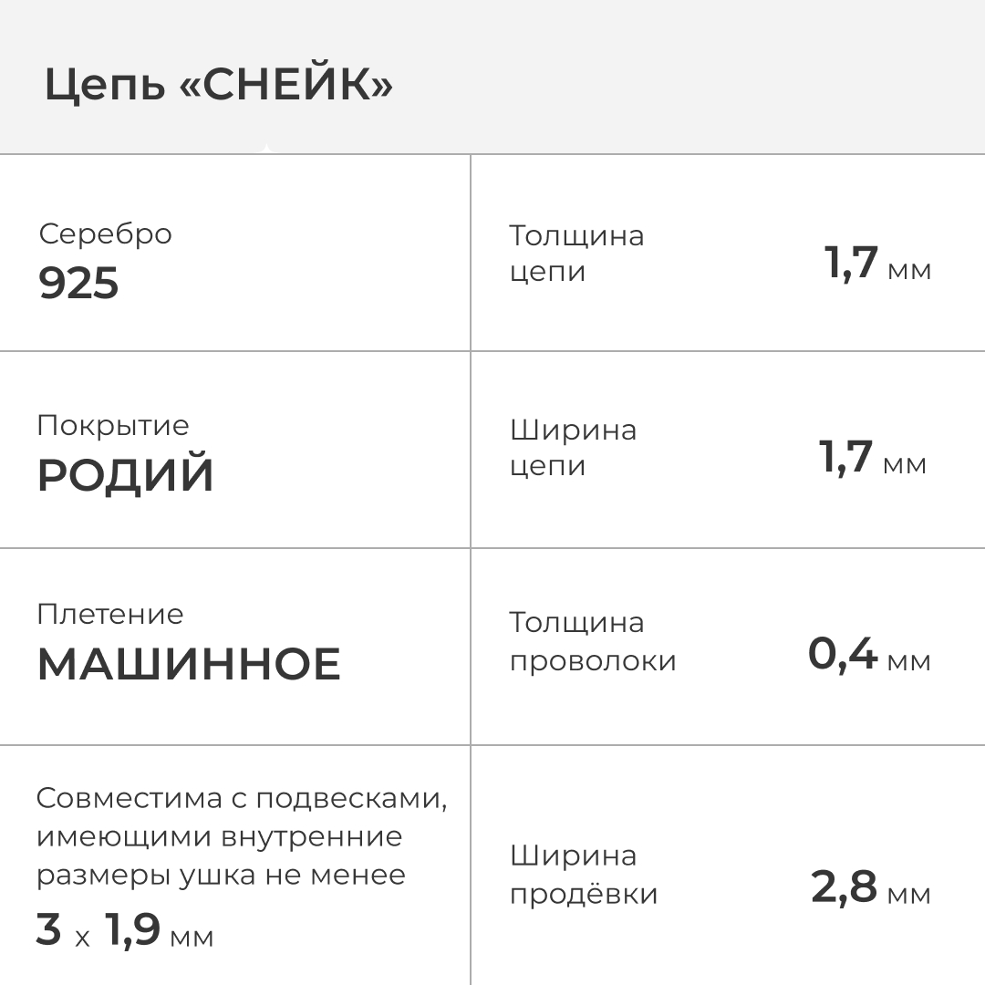 | Краткие описания | "Снейк" машинное плетение | |