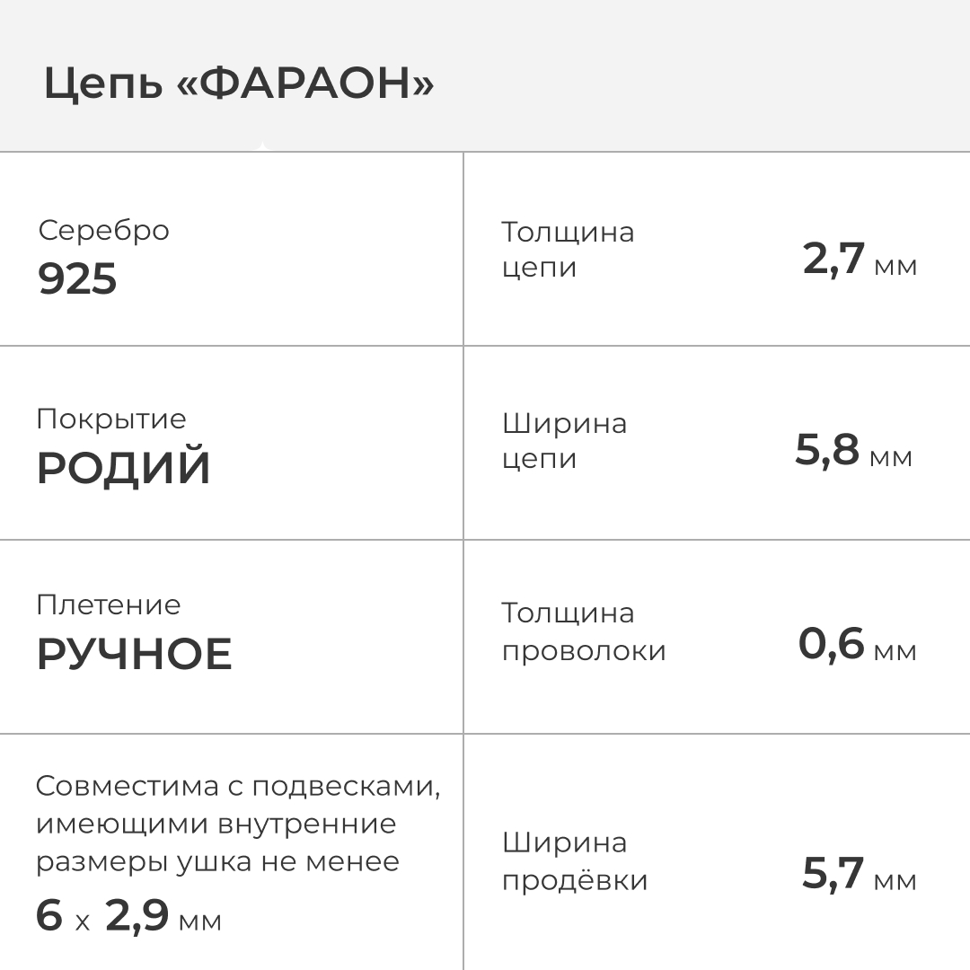 Несмотря на "воздушный" внешний вид, цепь, выполненная в технике "Фараон", относится к наиболее износостойким и долговечным.