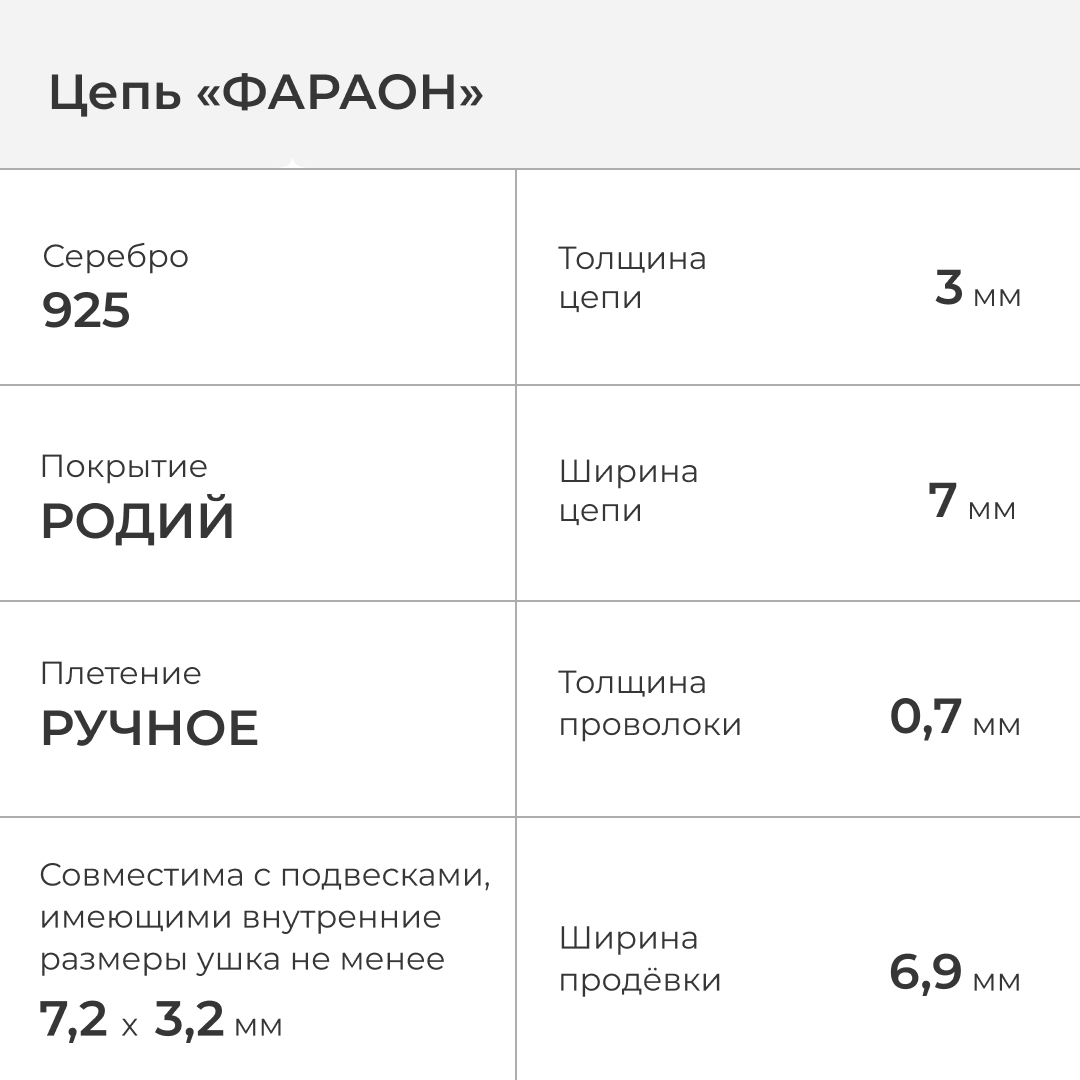 Несмотря на "воздушный" внешний вид, цепь, выполненная в технике "Фараон", относится к наиболее износостойким и долговечным.